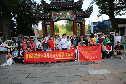 届残疾人健身周盲人健步行”活动在福州西湖公园举行。为这次活动提供志愿服务的团队是福建农林大学戴尔豪西大学联合学院(国际学院)青年志愿者协会。这次活动共有